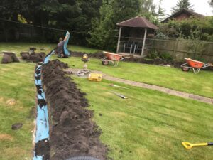 We were asked to replace an old septic tank, therefore we installed a brand new Harlequin capp6 sewage treatment plant, and pumped outlet to a soakaway.