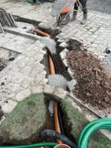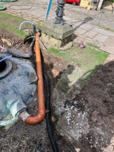 Our client had sold their property however, the old septic tank went into a watercourse so needed to be upgraded to meet new regulations. The surface water had to be diverted from the foul drain as well as it can not enter the sewage plant .