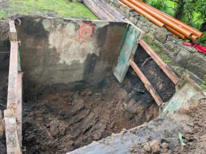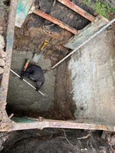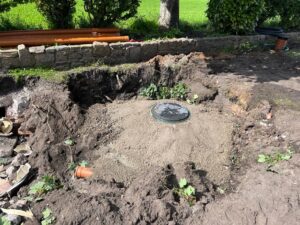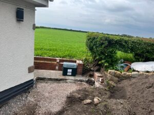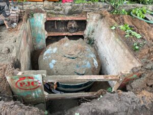 Here we have the installation of a 9-person sewage treatment system to serve a 3-bedroom house and separate a 1-bedroom annex.
